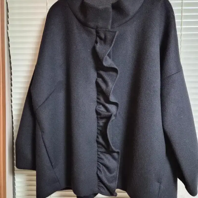 플라켓에 프릴 디자인이 있는 오버사이즈 자켓, 울 혼방 소재로 따뜻함을 제공합니다.