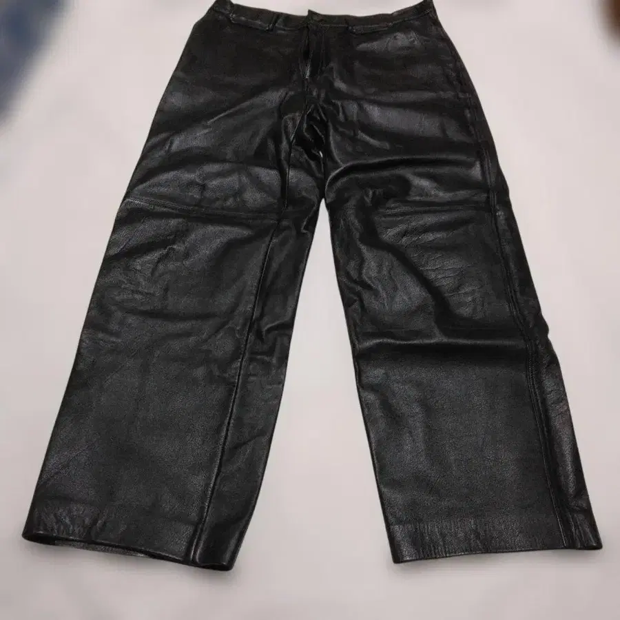 MAJESTIC 레더 블랙 와이드 팬츠 소가죽 블랙