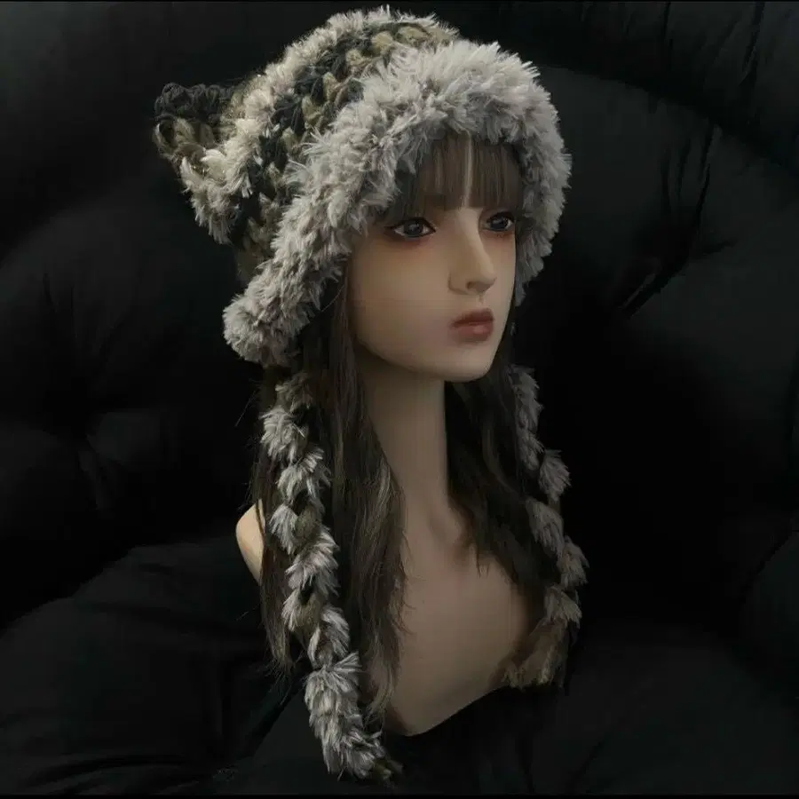 74 핸드메이드 고양이 귀 니트 모자 끈 포함 복슬복슬 고귀한 고양이풍