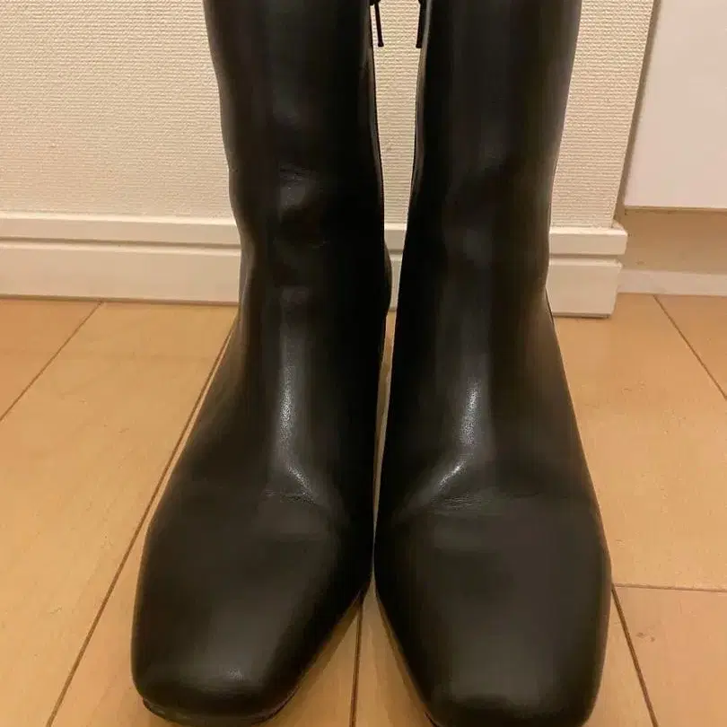 블랙 지퍼 부츠 중간 힐 스퀘어토