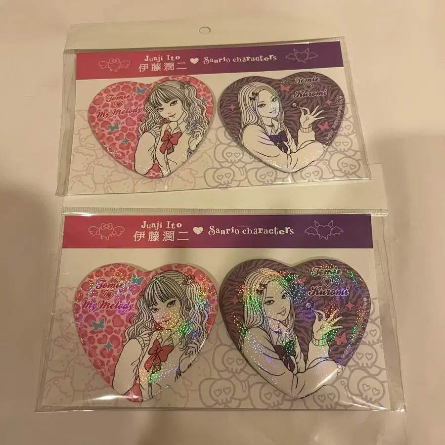 이토 준지 x 산리오 갸루 토미에 홀로그램 하트 캔뱃지 세트 2점 세트