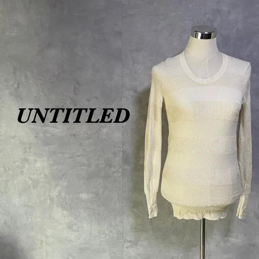 긴팔 U넥 보더 이소재 리브 절개 스트레치