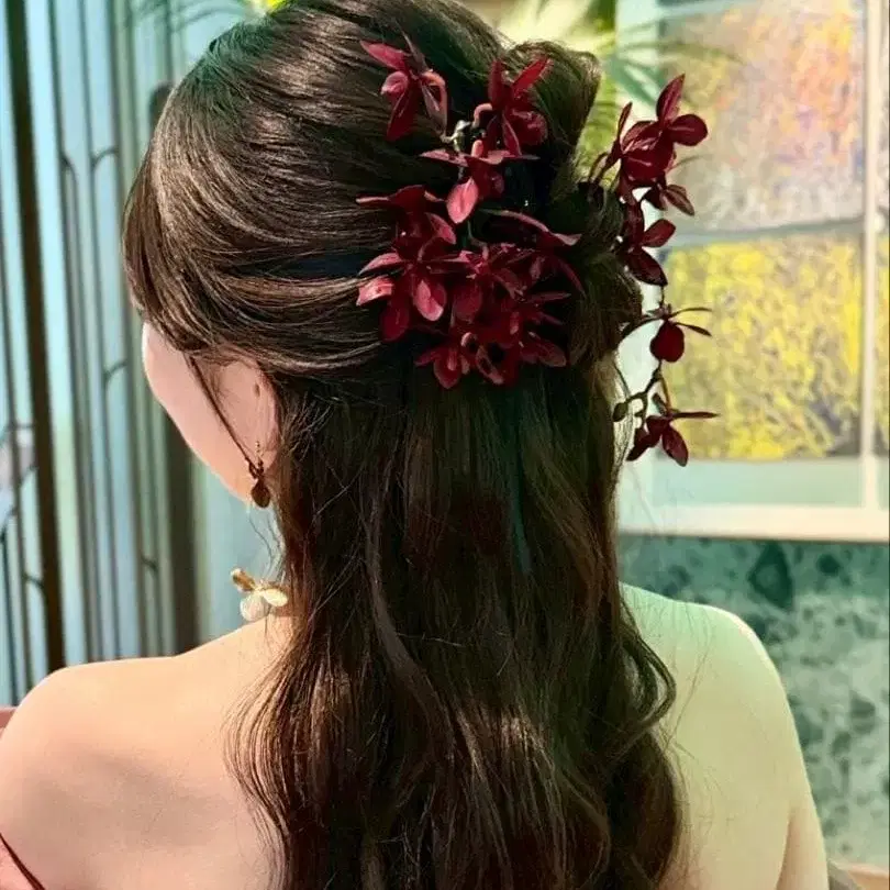 머리 장식 조화 빨간색 컬러 드레스 색상 변경