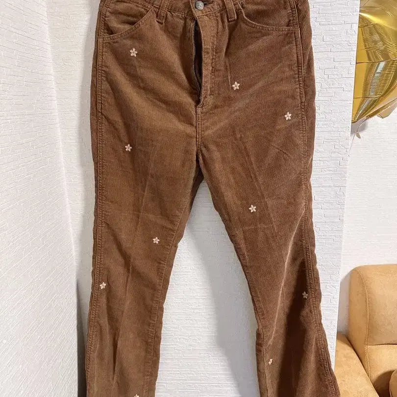 랭글러 꽃무늬 브라운 코듀로이 팬츠