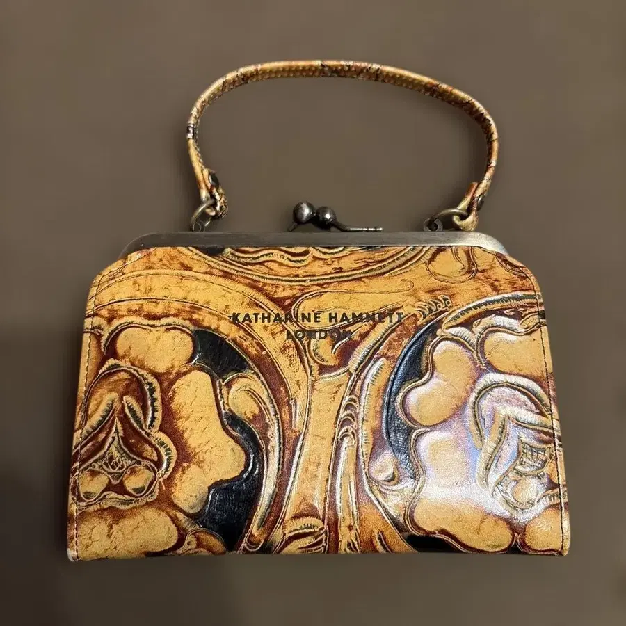 새상품급 [ 캐서린 햄넷 런던 ] 꽃무늬 가마구치 지갑 엠보싱 가공 가죽