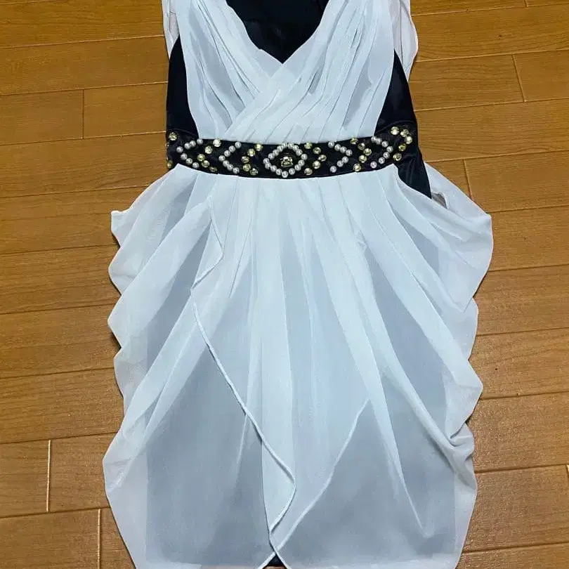 화이트 블랙 드레이프 드레스