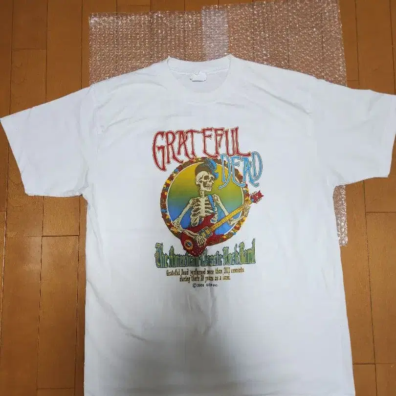 자동 번역되었어요. 원문보기스켈레톤 기타리스트 디자인이 특징인 GRATEFUL DEAD의 T셔츠.