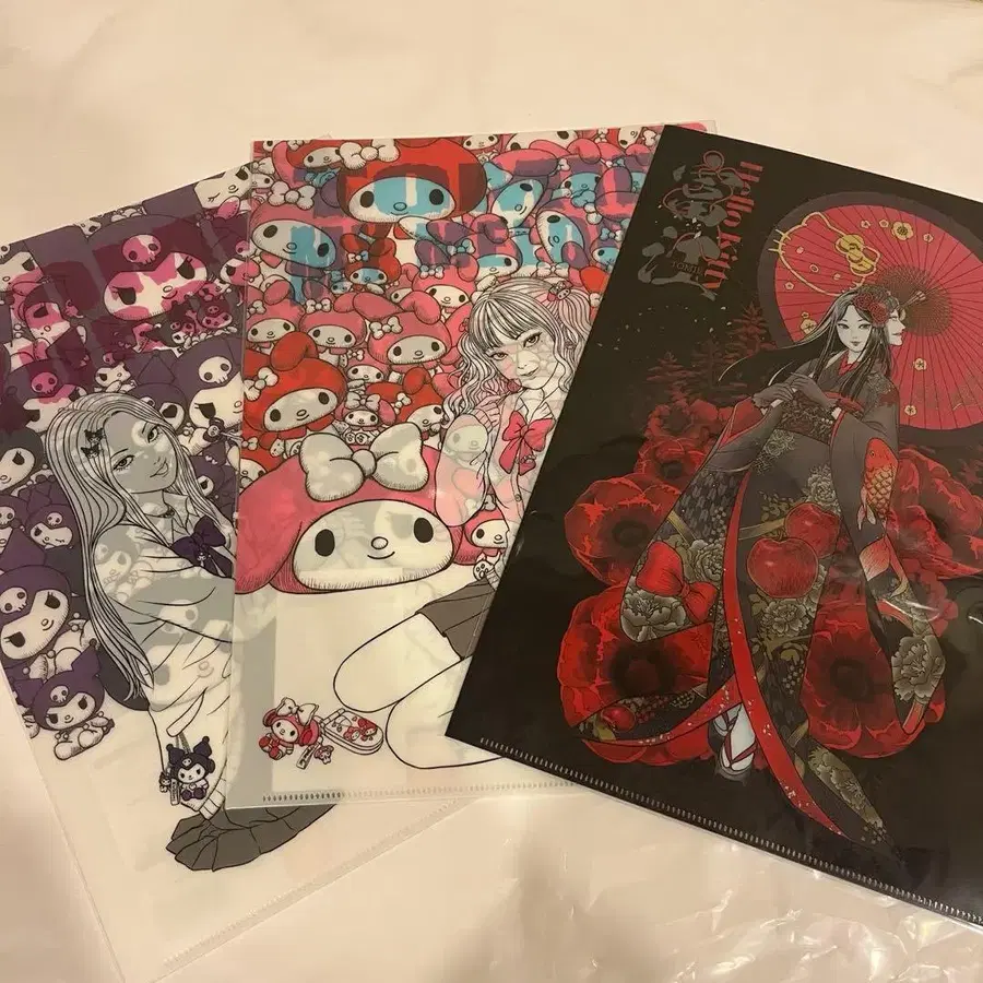 헬로키티 토미에 이토 준지 팝업 일본풍 디자인 클리어 파일 3장 세트