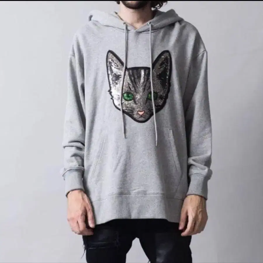 [ NO ID. ] CAT 스팽글 빅 후드티 그레이 XL 상당