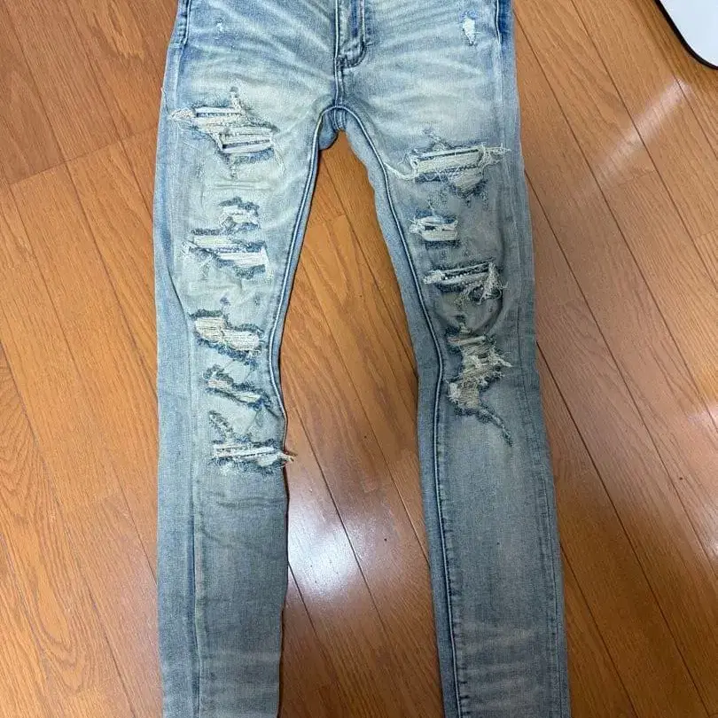 mnml 라이트 블루 스키니 데님 데미지 가공