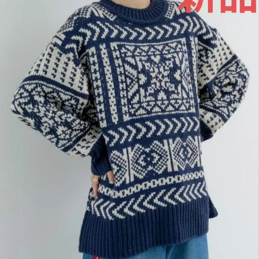 [ 새상품 ] 리파인드 웍스 반다나 패턴 자카드 니트