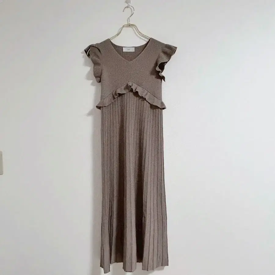 리브 니트 원피스, 프릴이 달린 슬리브리스 디자인.
