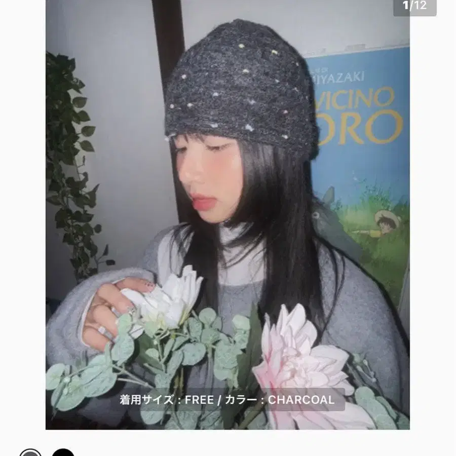douchidouchi 도트 무늬 니트 모자 비니 차콜