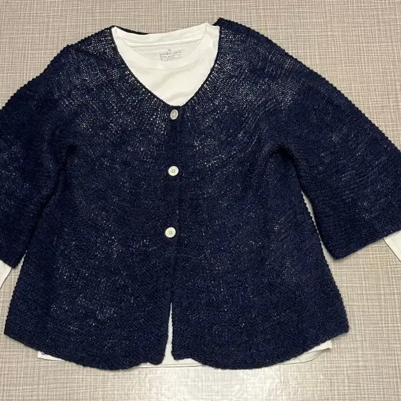 HUMAN WOMAN 네이비 니트 가디건 팔분 소매