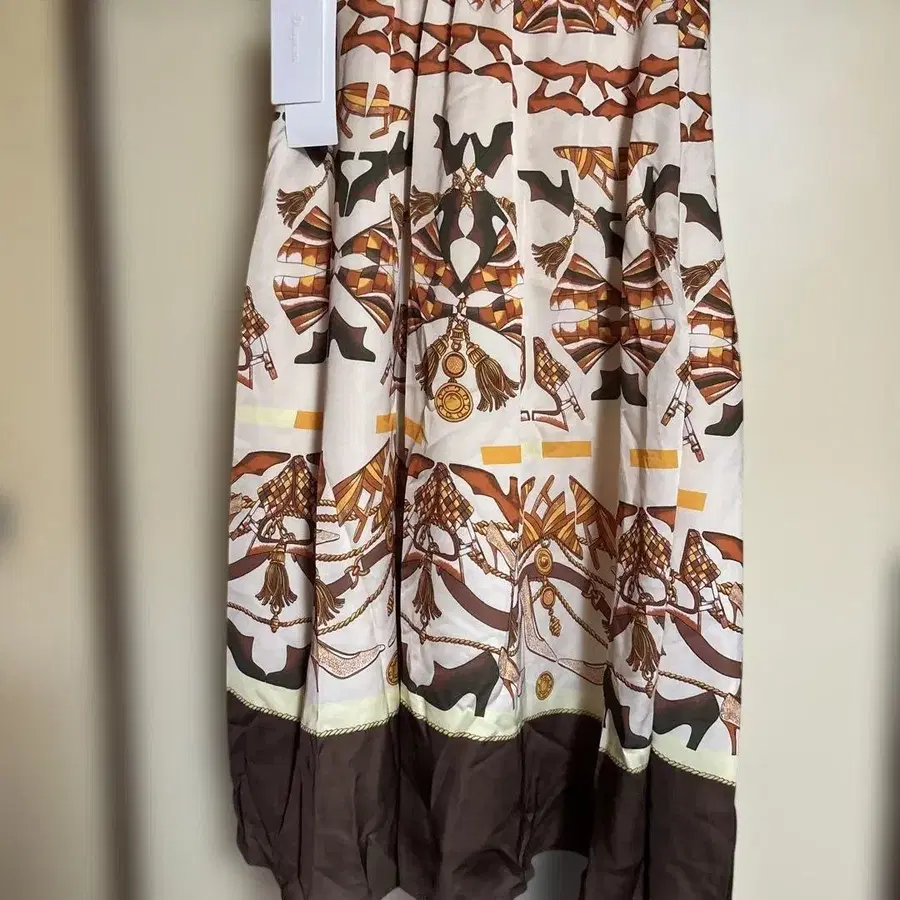 플레어 스커트 베이지 브라운 프린트