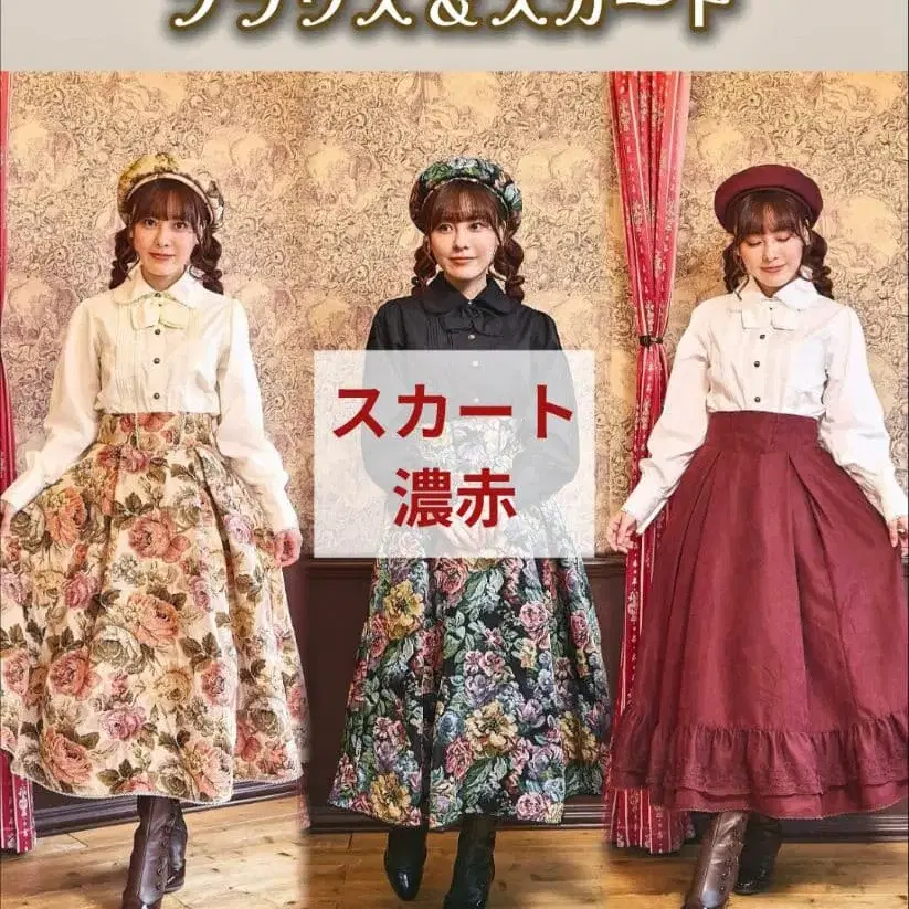 시마무라 클라로리 쿠루미 노엘 드 메모와르 스커트 진한 빨간색