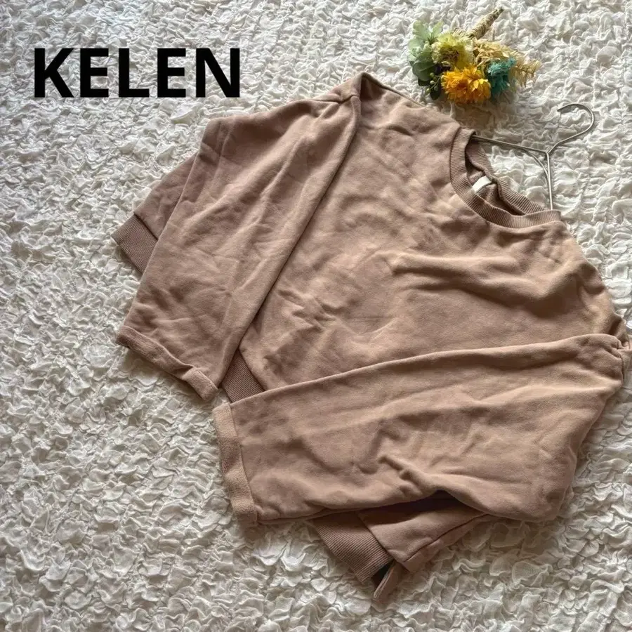 KELEN 케렌 롤업 슬리브 맨투맨 풀오버 오버 사이즈 드롭 숄더 베이지 브라운