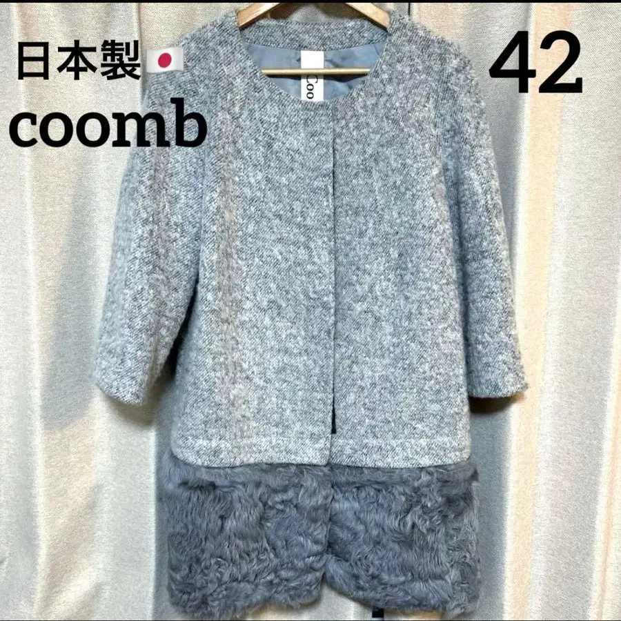 자동 번역되었어요. 원문보기[ 새상품급 ] Coomb 쿠움 노카라 울 코트 퍼 포함 퍼 탈부착 가능 그레이 일본제
