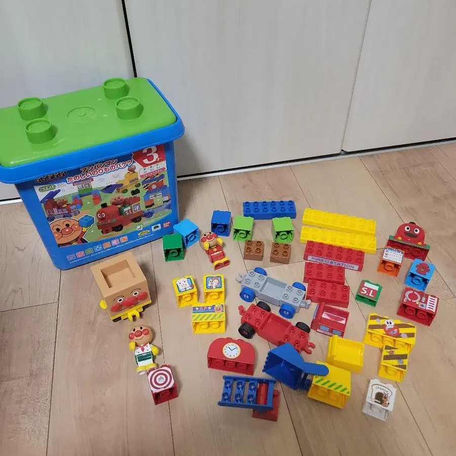 다양한 블록과 호빵맨 캐릭터를 즐길 수 있는 완구 세트. - 브랜드: 호빵맨 - 색상: 파랑, 그린, 빨간색, 옐로우 컬러, 오렌지 - 내용물: 블록, 호빵맨 캐릭터 인형, 차량 부품 방문해 주셔서 감사합니다. 새상품을 구매하여 아이가 좋아하며 가지고 놀았습니다. 이제 더 이상 가지고 놀지 않게 되어, 호빵맨을 좋아하고 가지고 놀아줄 분께 양도합니다. 부족한 부품이 있어 비슷한 부품을 넣어두었습니다. 호빵맨 덤도 함께 드립니다. 수납 통째로 발송합니다. 아이가 가지고 놀던 것으로, 흠집이나 제거되지 않는 얼룩이 있지만, 아직 즐겁게 가지고 놀 수 있다고 생각합니다. 바로 가지고 놀 수 있도록 최대한 깨끗하게 하여 발송합니다. 별도로 레고 블록도 판매 중이니, 많이 가지고 놀고 싶은 분은 묶음 구매 가능합니다! 댓글 주세요.