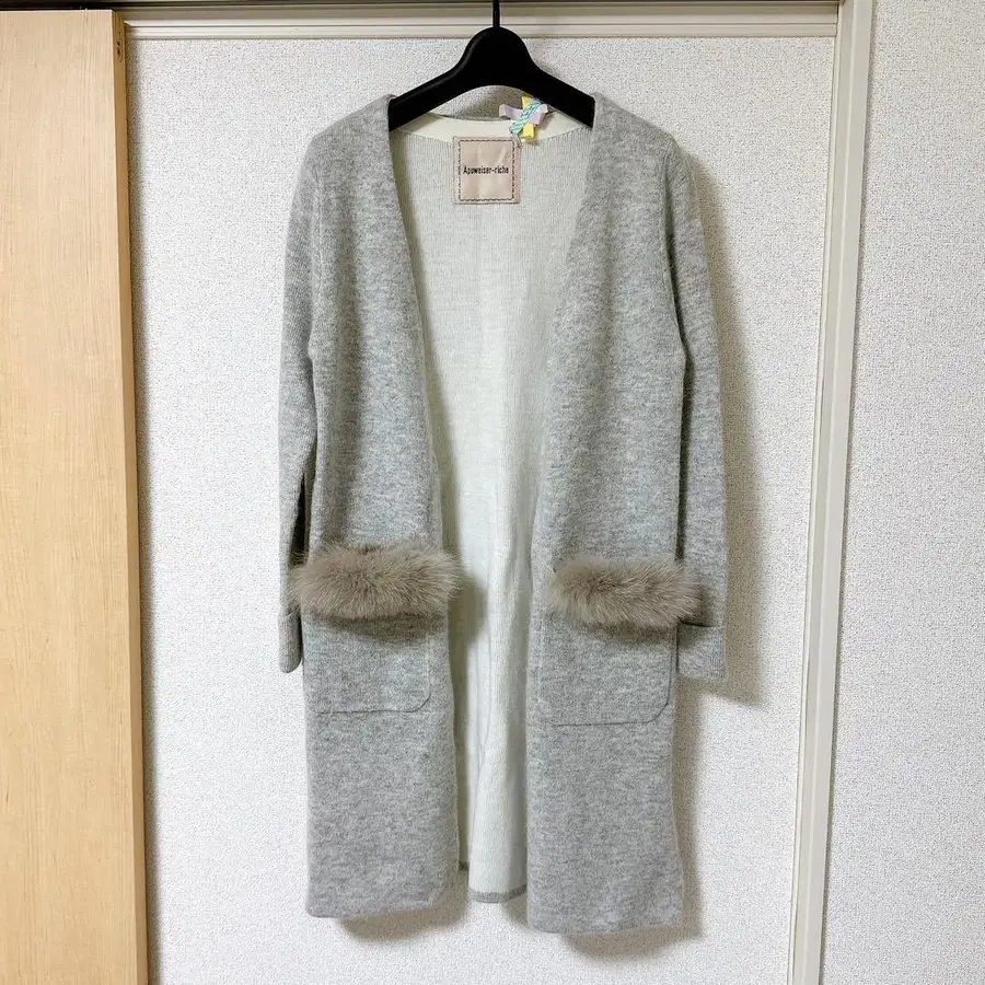 Apuweiser-riche 퍼 부착 롱 가디건 그레이 M