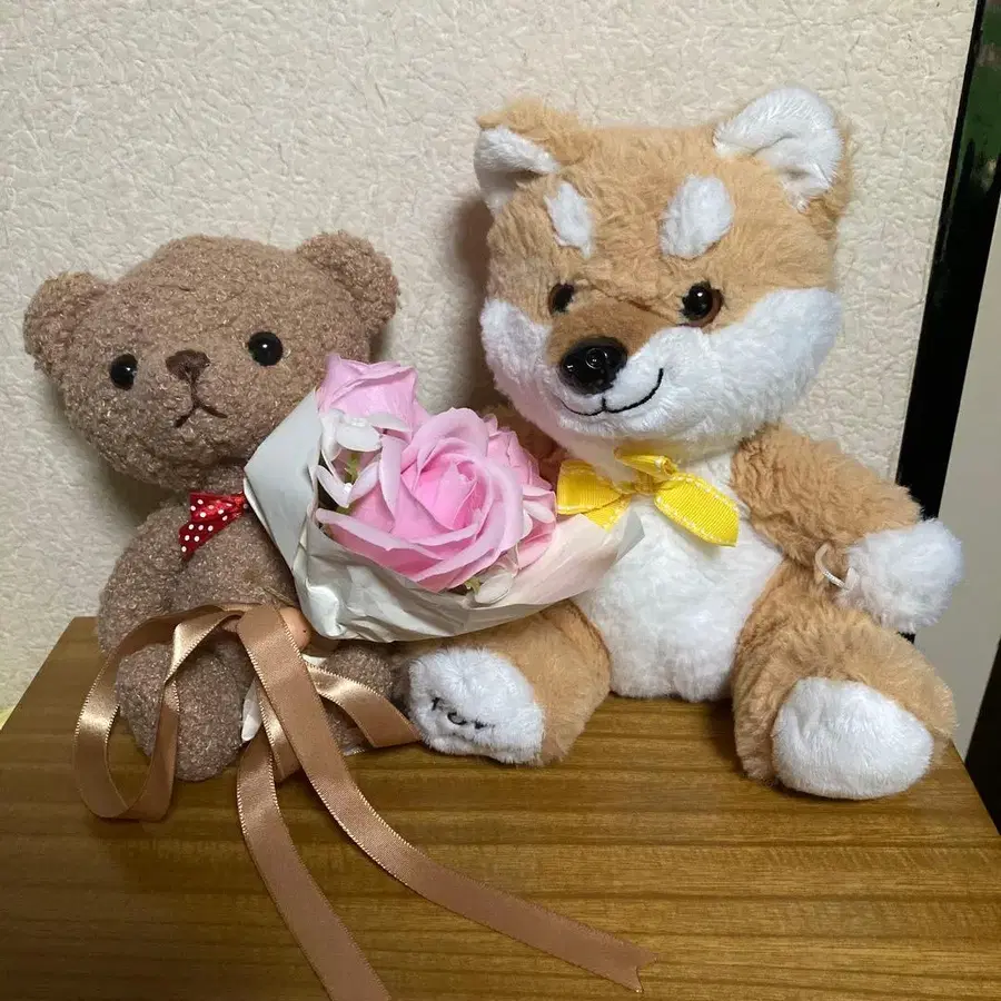 곰과 강아지 봉제 인형 꽃다발 포함 기프트
