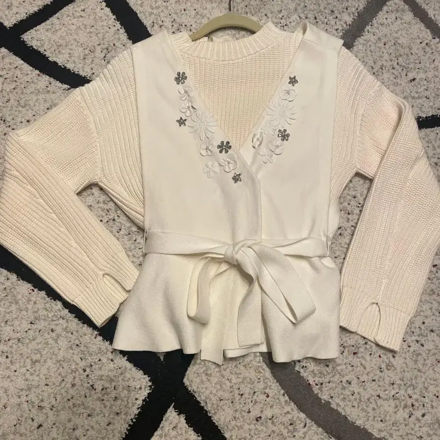 체스티 베스트와 니트 2종 세트 꽃 장식 화이트 니트