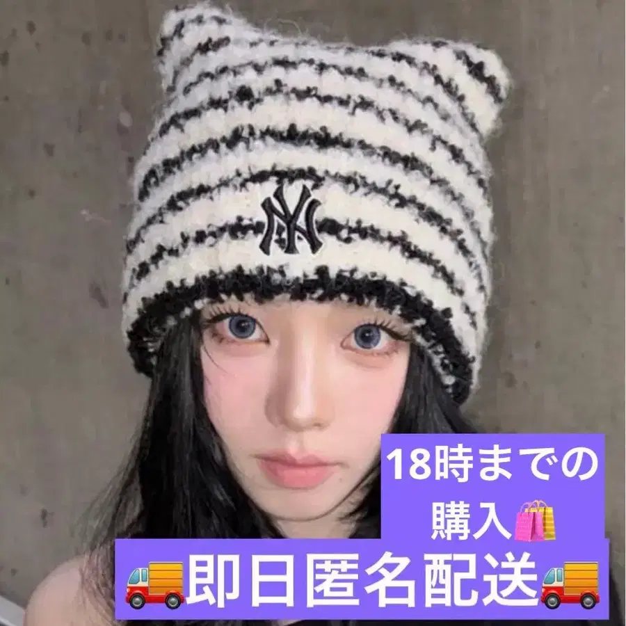 MLB 비니 보더 karina 착용 고양이 귀 니트 모자 미야옹