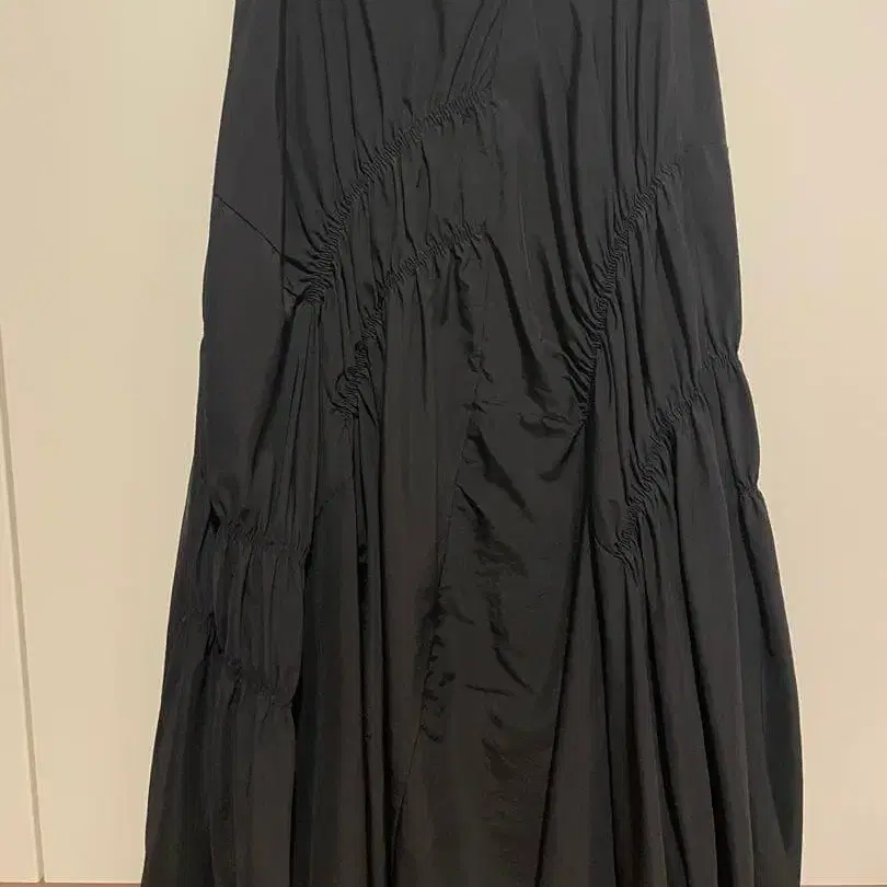 블랙 셔링 플레어 롱 스커트