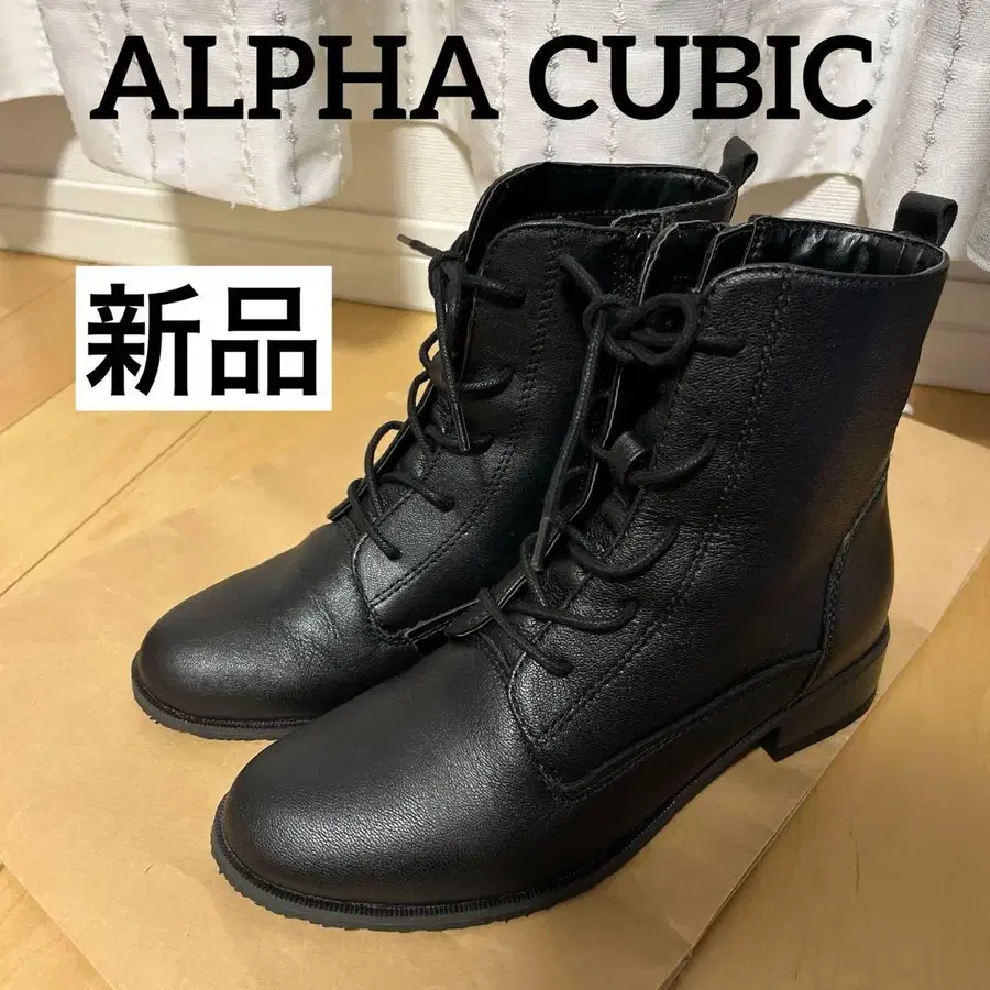 천연 가죽 알파 큐빅 블랙 레이스업 부츠