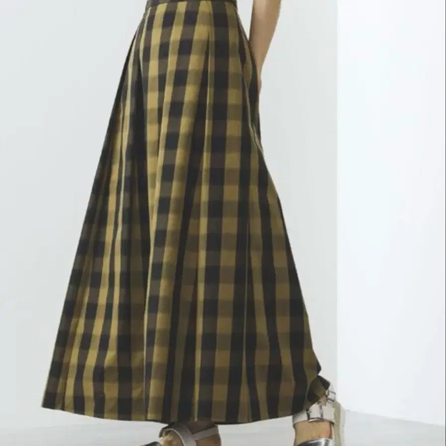 BEAMS HEART 체크 무늬 플레어 롱 스커트