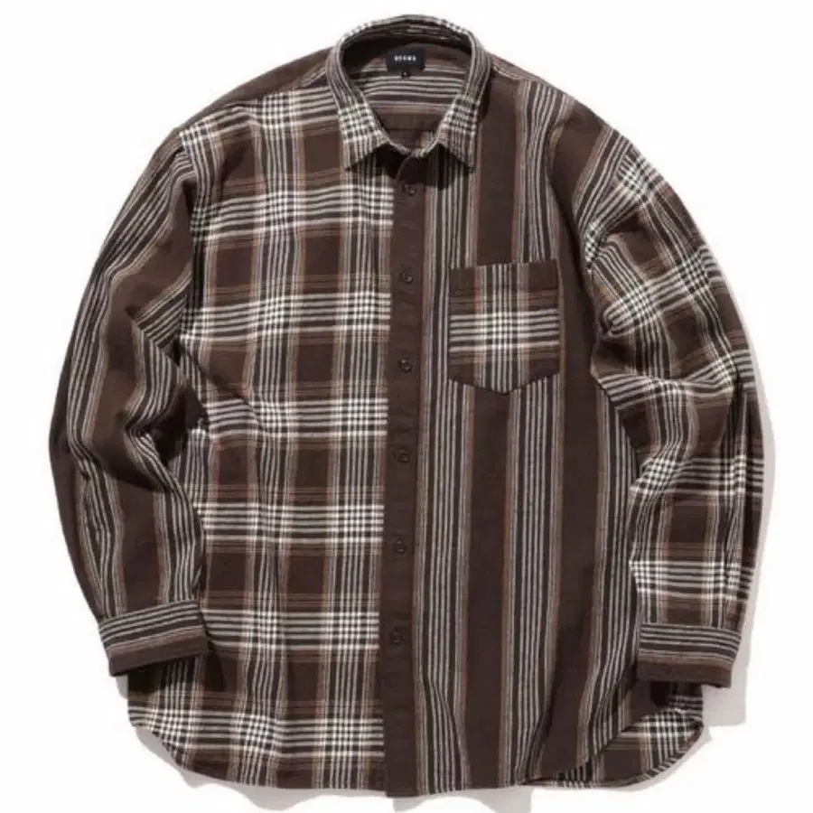 BEAMS 체크 스트라이프 긴팔 플란넬 셔츠 브라운 계열 크레이지 패턴