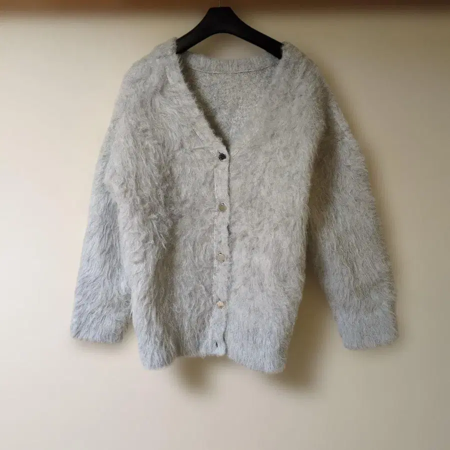 그레이스 콘티넨탈 다이어그램 샤기 니트 가디건 그레이