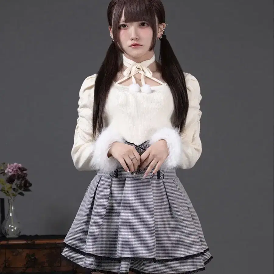 Palelfy 퍼 달린 리본 소매 컨셔스 니트
