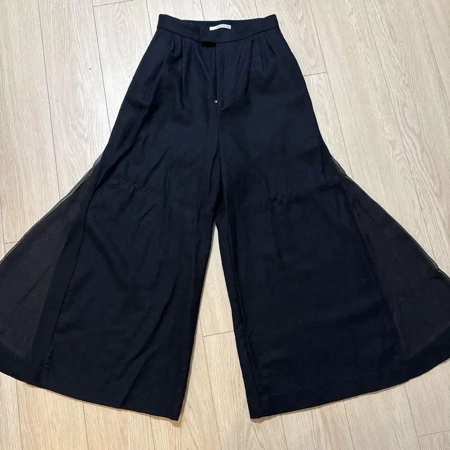 A pupil 블랙 울 소재 와이드 팬츠 비침 있음