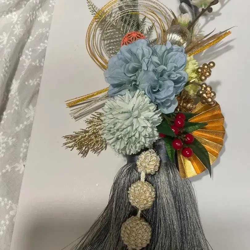 설날 볏짚 장식 일본풍 꽃 장식 인테리어 장식 약 30cm