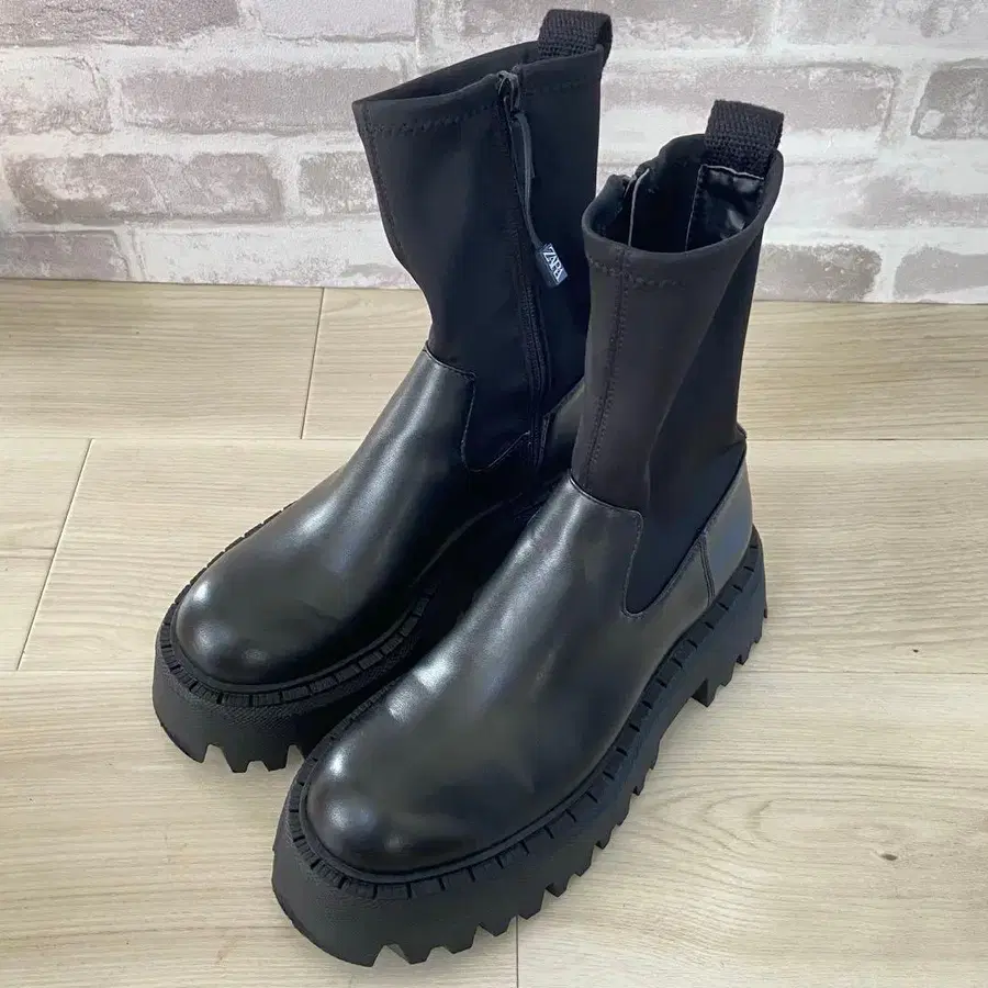 ZARA 삭스 부츠 23cm 트랙 밑창 통굽 사이드 지퍼 숏