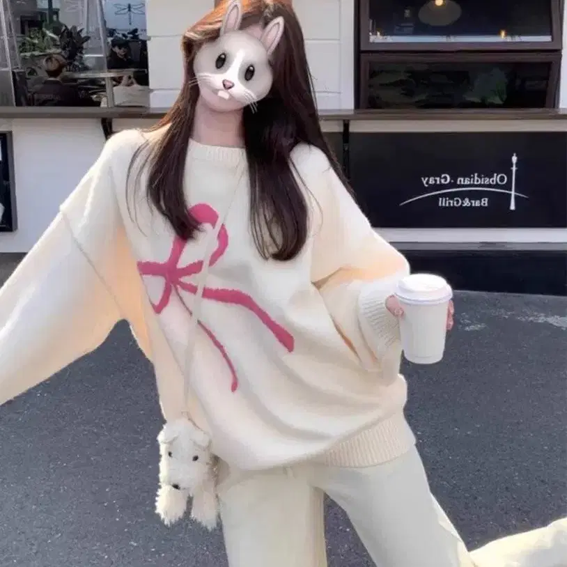 크림색 오버 사이즈 니트 NEW