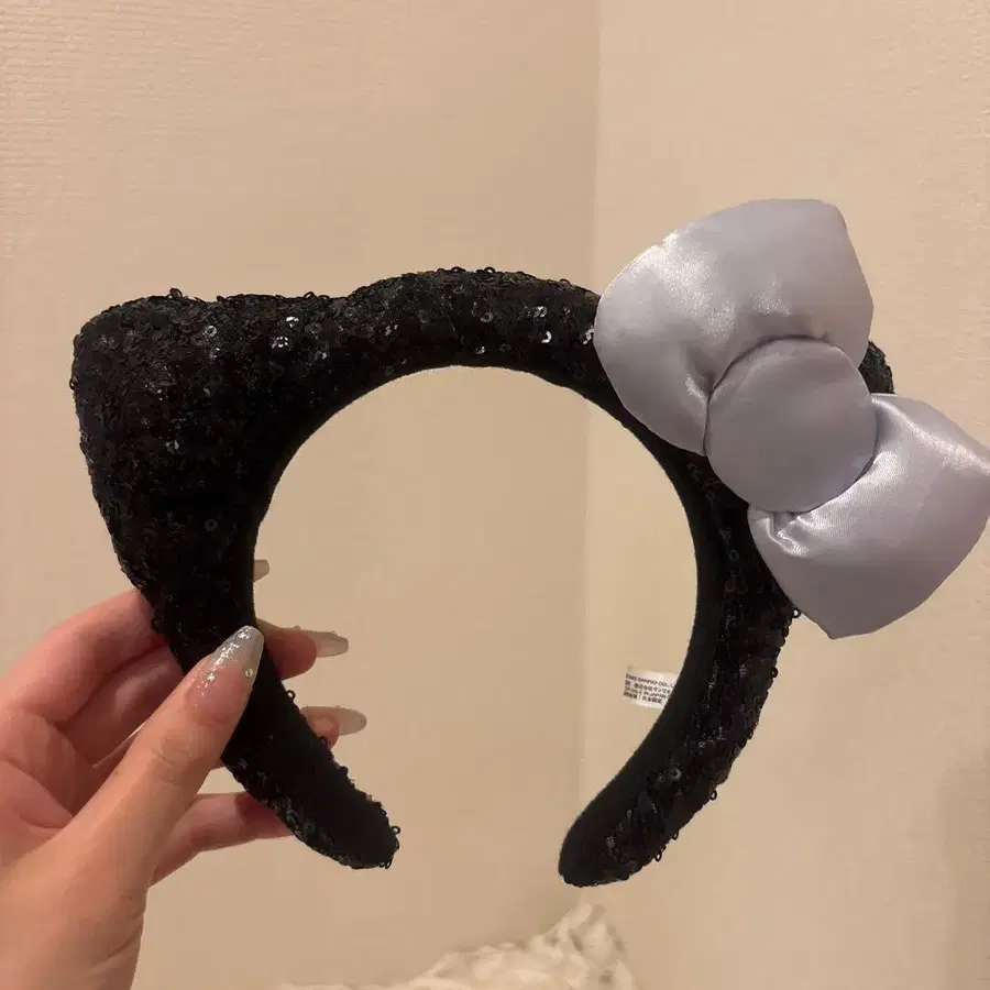 고양이 귀 머리띠 스팽글 블랙과 실버