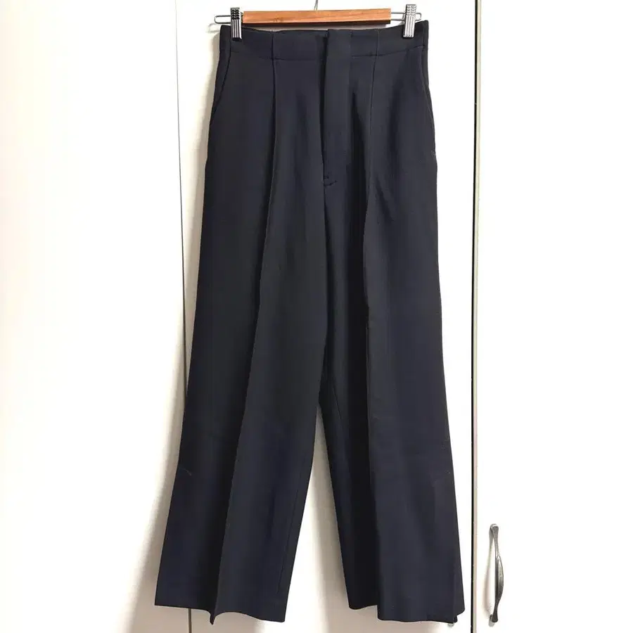 CITY 블랙 팬츠 하이웨스트 와이드 센터 프레스 슬릿
