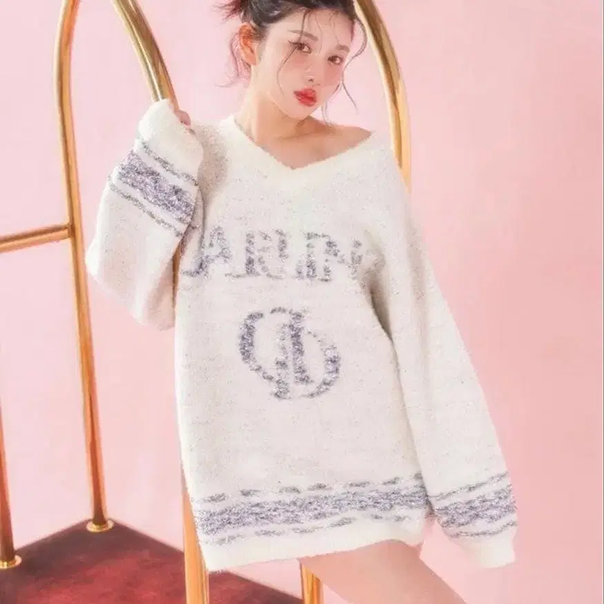 다리치 믹스 컬러 로고 니트 튜닉 화이트