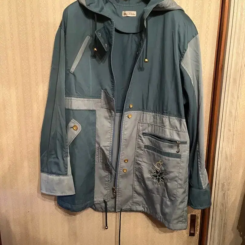 [레어] 자수 달 골드 버튼 패치워크 마운틴 후드티 파랑