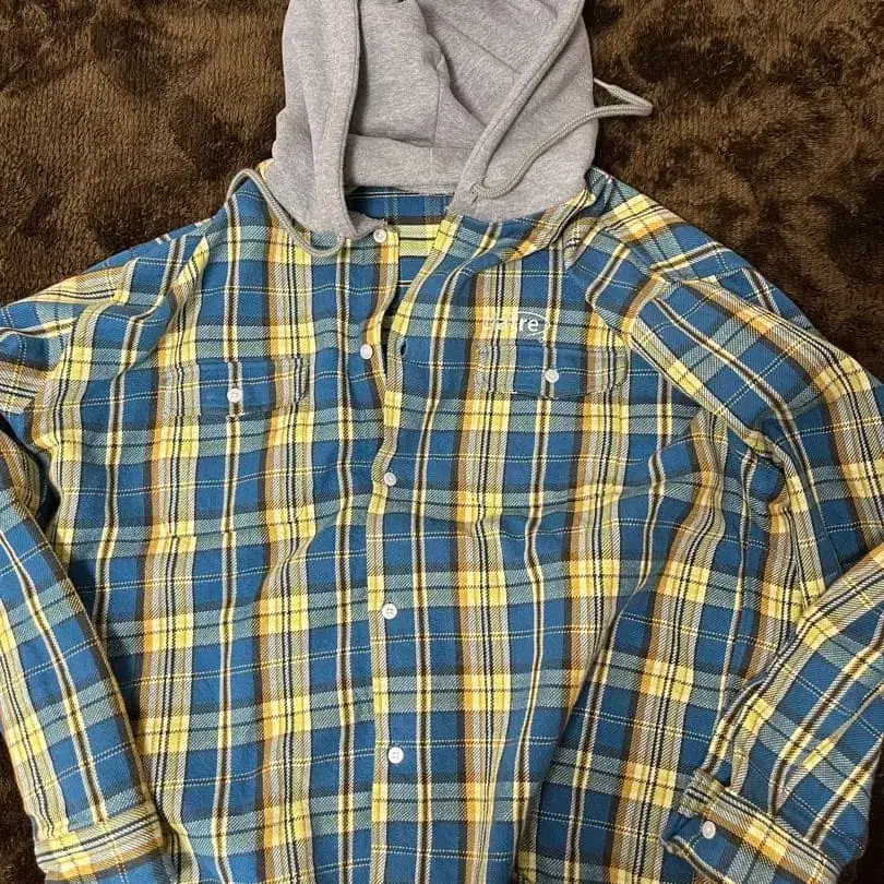 ciatre 후드 부착 플란넬 셔츠 XL 파랑 옐로우 컬러 체크