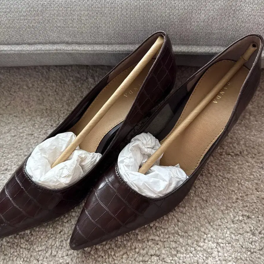 미사용 새상품 RANDA 다크 브라운 크로커다일 패턴 펌프스