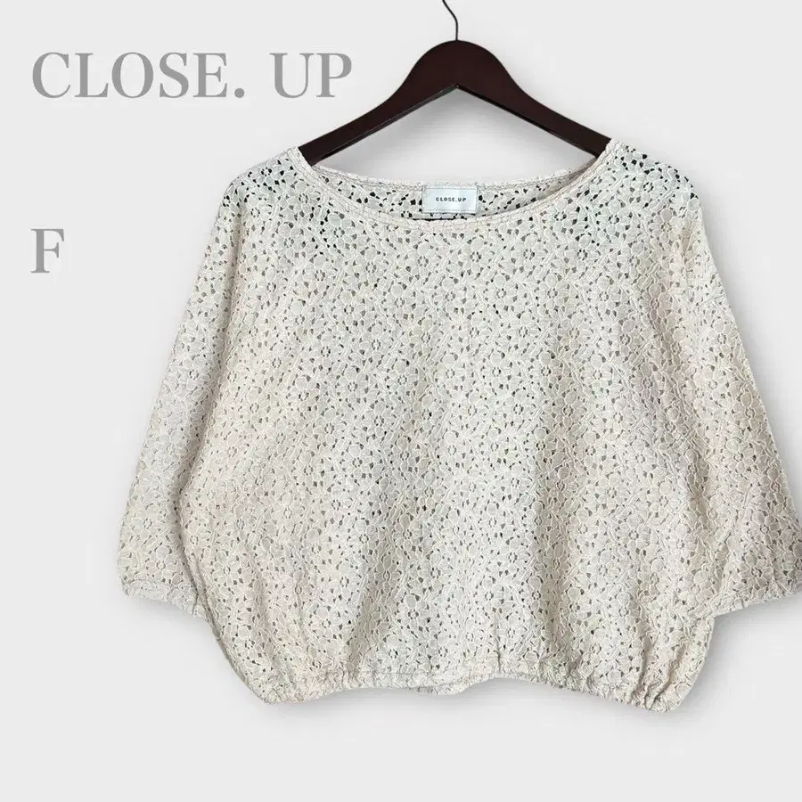 클로즈업 전체 레이스 블라우스 7부 소매 베이지 깔끔한 페미닌