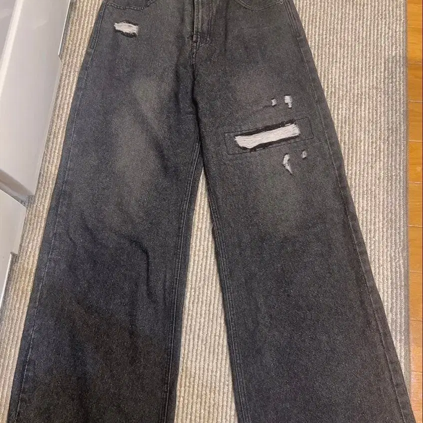 [ ASTRONOMY ] 데미지 가공 다크 그레이 와이드 레그 데님 팬츠