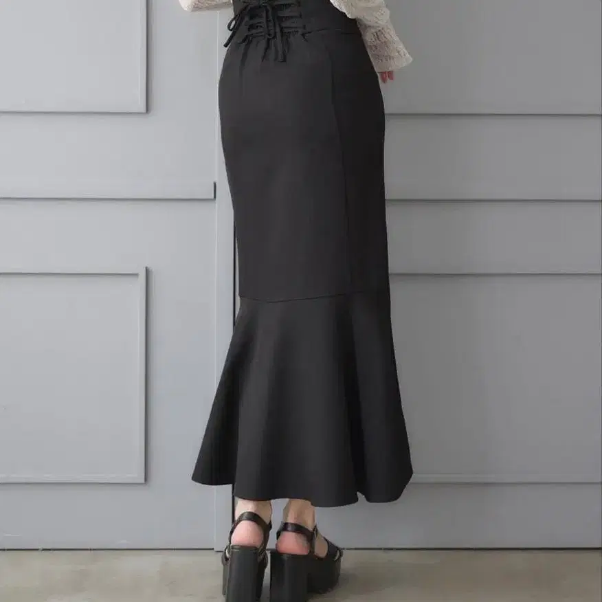 ambre neige 백 레이스업 머메이드 스커트 블랙