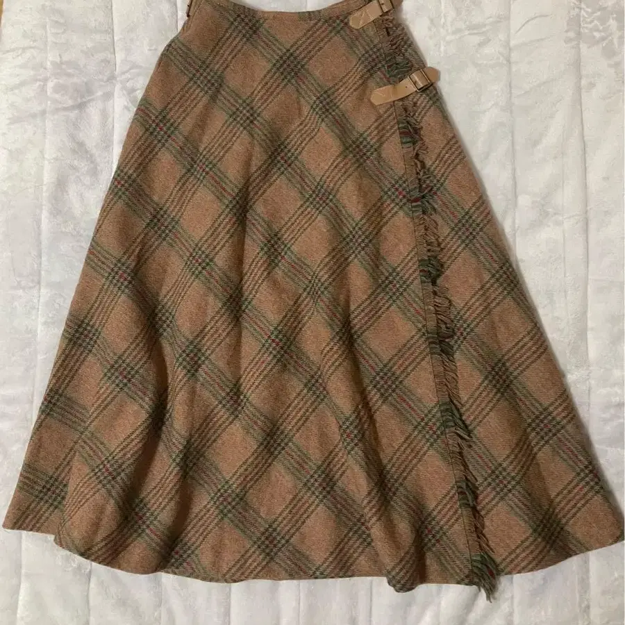 KANEKO ISAO 울 100% 랩 스커트 체크 프린지 카네코 이사오