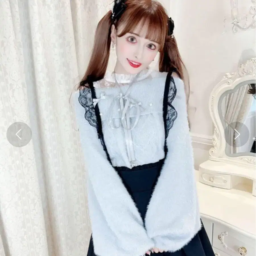 MA*RS 마즈 리본&펄 케이블 오프숄더 니트 스카이블루