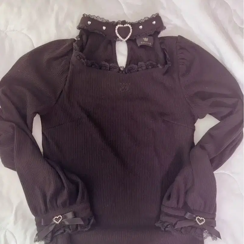 ROJITA 로지타 하트 버클 초커 골지 블라우스