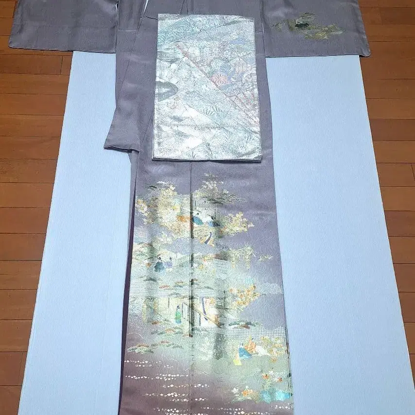 미사용품 순수 실크 금박 장식 호몬기 후쿠로 오비 2세트